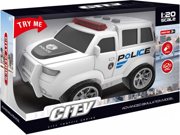 Het model is direct klaar voor gebruik – batterijen 3× AG13 zijn inbegrepen. Ideaal als cadeau voor kleine politieagenten en voor het naspelen van reddingsscènes.