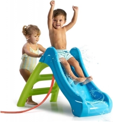 De FEBER First Slide glijbaan is een uitstekende keuze als eerste glijbaan voor peuters. Dankzij de compacte afmetingen, lage opstap en comfortabele treden met geïntegreerde handgrepen leren kinderen snel en veilig glijden. Het plastic oppervlak is beschermd door een UV-laag, waardoor de kleuren langdurig hun intensiteit behouden.
