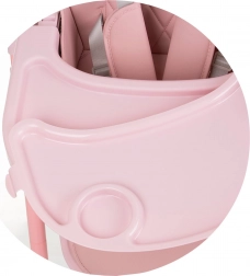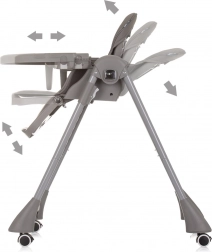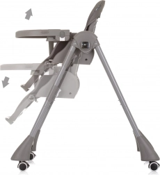 Ouders waarderen het dubbele blad: het bovenste afneembaar voor snelle reiniging en het onderste met beschermende T-stang voor maximale veiligheid. Je past de stoel eenvoudig aan de eettafel aan dankzij 8 hoogtestanden. Vier wieltjes zorgen voor mobiliteit in huis en na het eten klap je hem eenvoudig in tot een compact formaat.