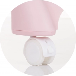 Vier wieltjes maken het gemakkelijk om tussen kamers te verplaatsen en het compacte inklappen bespaart ruimte wanneer je de stoel even niet gebruikt.