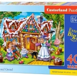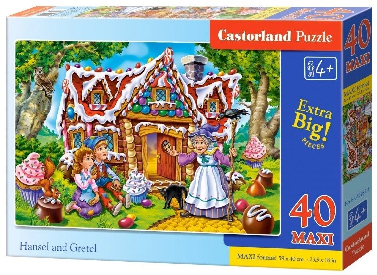 Deze grootformaatpuzzel met het sprookjesthema Hans en Grietje is ideaal voor kinderen vanaf ongeveer 4 jaar. Dankzij de grotere en stevige stukjes is het gemakkelijk te hanteren en komt het beeld snel tot leven met zijn heldere en esthetische kleuren.