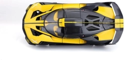Ontdek de getrouwe replica van de revolutionaire supersportwagen BUGATTI BOLIDE in een precieze uitvoering. De die-cast metalen carrosserie, realistische proporties en contrasterende geel-zwarte lak benadrukken de agressieve aerodynamische lijnen, waardoor het model in elke collectie uitblinkt.