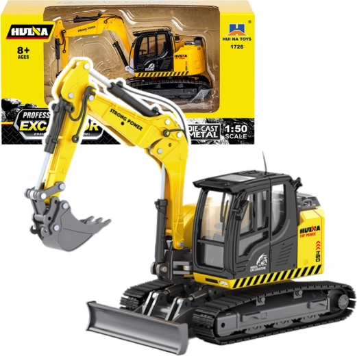 Metalen rupsgraafmachine met schuiver Huina geel 1:50