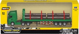 Dit vrachtwagenmodel heeft handmatige besturing, waarmee je vooruit, achteruit en naar links en rechts kunt sturen, voor precieze manoeuvres. De afneembare aanhanger maakt diverse speelscenario’s en een realistische simulatie van houttransport mogelijk. Dit model is ideaal als verzamelobject én als speelgoed dat de verbeelding prikkelt.