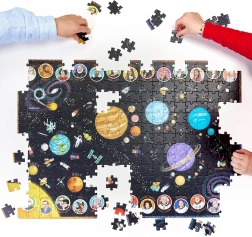 Betreed de wereld van de wetenschap met onze boeiende Puzzel Ontdekkers. Deze set bevat 300 stukken met afbeeldingen van planeten, manen, ruimteschepen, wetenschappers en ontdekkingen van het Zonnestelsel.