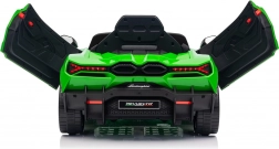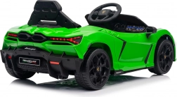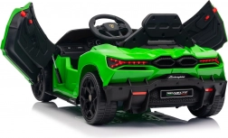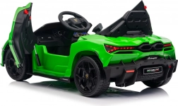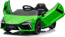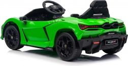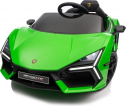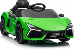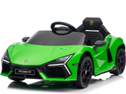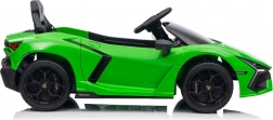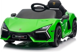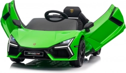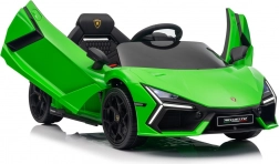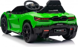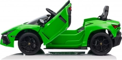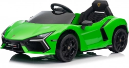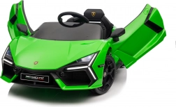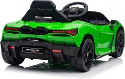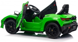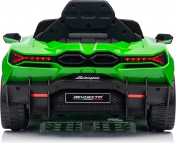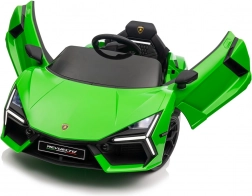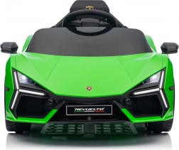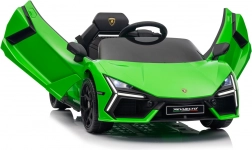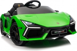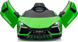 Stijlvolle elektrische kinderauto in de stijl van de LAMBORGHINI Revuelto met een 12V 9Ah accu, twee motoren, EVA-wielen en 2,4 GHz afstandsbediening met STOP-knop. Verder met geleidelijke start, LED-verlichting, openende deuren en een multimediapaneel met Bluetooth/USB/FM/MP3 voor maximaal plezier.