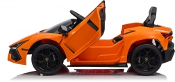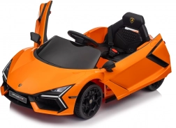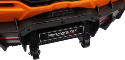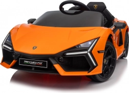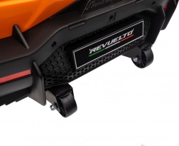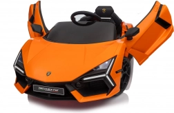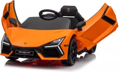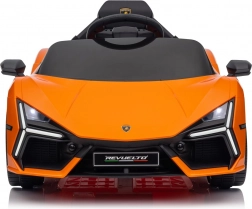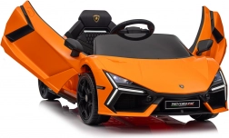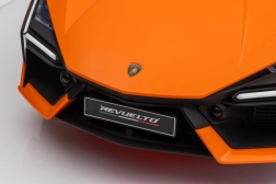 De auto geïnspireerd op de LAMBORGHINI REVUELTO valt op met scherpe lijnen, merklogo’s en iconische opklapdeuren voor gemakkelijk instappen.