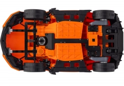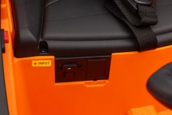 Comfort wordt gegarandeerd door zachte EVA-wielen 19×8 cm, een zitting van eco-leer met veiligheidsgordels en een duidelijke batterijstatusindicator. Kinderen zullen genieten van LED-koplampen en -achterlichten en het multimediapanel met Bluetooth, MP3, USB, AUX en FM-radio, inclusief geluiden en claxon op het stuur.