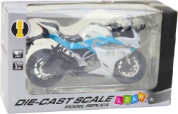 Het model is uitgerust met lichten en geluiden die werken op 3× AG13-batterijen (bijgevoegd), wat de indruk van een echte machine versterkt. De sportieve wit‑blauwe kleurcombinatie, geïnspireerd op racemotoren, onderstreept het dynamische karakter en maakt het een perfect cadeau voor zowel kinderen als volwassen liefhebbers.