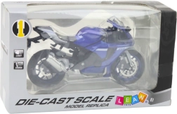 Deze metalen sportmotor is uitgerust met licht- en geluideffecten die worden geactiveerd met behulp van 3x AG13 batterijen (inbegrepen in de verpakking). Het dynamische sportontwerp in blauwe kleur is geïnspireerd door klassieke racemotoren, wat het model een authentiek karakter geeft.