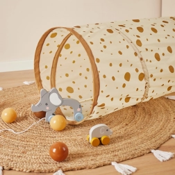 Karameltinten en polka dot patroon geven de tunnel een gezellige en moderne uitstraling.