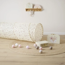 Deze tunnel maakt deel uit van de Vintage bloemen collectie, die een elegant bloemmotief in elke kinderkamer brengt. Het is geschikt voor gebruik binnen en verandert elke ruimte in een knusse speelplek.
