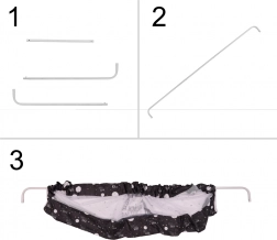 Installatie in enkele minuten – schuif de steunen simpelweg onder de matras en plaats het frame in de textiele hoes met netstof. Stabiele bevestiging zonder het bed te beschadigen.