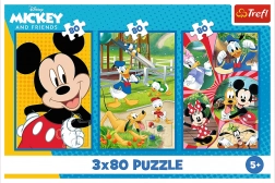 Deze puzzelset brengt kinderen extra plezier en mogelijkheden – drie verschillende afbeeldingen met favoriete personages uit de Disney-wereld van MICKEY MOUSE. Dankzij de kleinere afmetingen van de eindafbeeldingen en 80 stukjes per puzzel is het product ideaal voor jongere bouwers die zo geduld, concentratie en fijne motoriek oefenen.