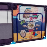 Deze rechthoekige box met een speels uilenmotief is ontworpen voor comfort en veiligheid van kinderen vanaf de eerste dagen. Dankzij de lichte constructie verplaatst u hem makkelijk naar waar u hem nodig heeft – in de woonkamer, de tuin of op het terras. Het materiaal is zeer gemakkelijk te reinigen en te desinfecteren, ideaal voor dagelijks gebruik.
