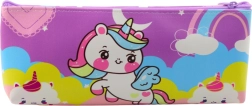 Het opvallende patroon met eenhoorn en regenboog in pastelkleuren maakt het etui aantrekkelijk voor kinderen.