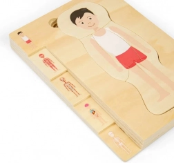 Ontdek het menselijk lichaam op een speelse manier met deze hoogwaardige houten puzzel. Dankzij de gelaagde stukjes begrijpen kinderen de lichaamsopbouw van skelet tot organen en ontwikkelen ze fijne motoriek en logisch denken. Gemaakt van FSC-gecertificeerd hout, met niet-giftige verven en in overeenstemming met de Europese veiligheidsnormen.