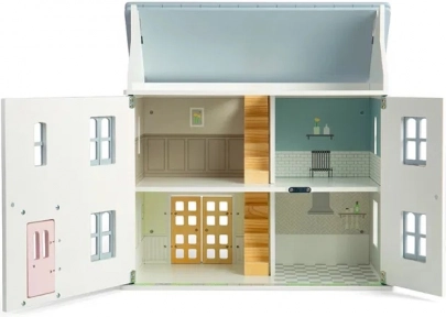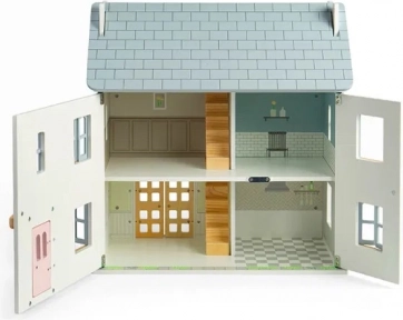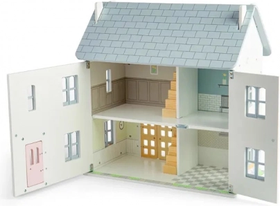 Betoverend houten poppenhuis in zachte pasteltinten met victoriaanse details, dat de zomerse sfeer en eindeloos speelplezier brengt. Het biedt 2 verdiepingen + zolder, 4 kamers, 2 trappen en een openklapbare voorzijde, ramen en deuren. Gemaakt van FSC®-gecertificeerd hout en afgewerkt met niet-giftige verf, stimuleert het fantasiespel, fijne motoriek en taal- en emotionele ontwikkeling. Meubels en poppen zijn niet inbegrepen.