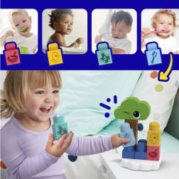 Interactieve Mega Bloks-set met nachtlampje helpt kinderen een gezond ochtend- en avondritueel te ontwikkelen. Bevat 4 figuurtjes en een bouwbare omgeving. Op het nachtlampje kun je een maan- of zonblok plaatsen en wiegmelodietjes, zachte geluiden, lichteffecten en een sterrenprojector voor de avond starten, of optimistische liedjes, omgevingsgeluiden en zonpatronen voor de ochtend. Ideaal voor kinderen vanaf 1 jaar.