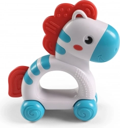 Deze schattige paarden-rammelaar is het ideale eerste speeltje voor de allerkleinsten. De combinatie van felle kleuren en een prettig rammelend geluid stimuleert de zintuigen en moedigt het kind aan om te grijpen en te ontdekken. Het lichte ontwerp en de comfortabele vorm zijn afgestemd op kleine handjes.