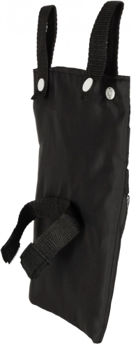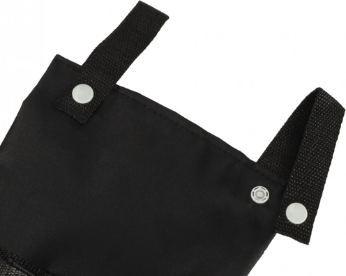 Twee bovenste lussen met drukknoopsluiting en een achterste klittenbandstrip houden de tas stevig op zijn plek, ook op kinderkopjes of grind.