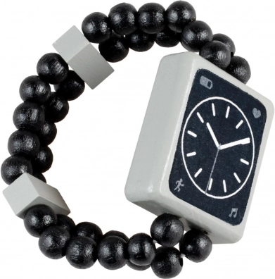 Bied kinderen creatieve spelletjes en onopvallend leren klokkijken met houten, dubbelzijdige horloges. De ene kant toont de digitale tijd, de andere een analoge wijzerplaat met wijzers – ideaal voor de eerste tijdsoriëntatie. De lichte houten constructie en de elastische kralenband garanderen comfortabel dragen en eenvoudig omdoen zonder sluiting.