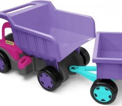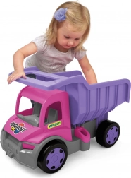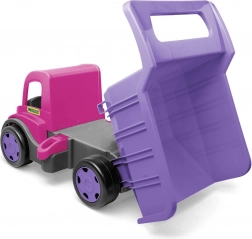 Ontdek de robuuste GIGANT-kiepwagen in een aantrekkelijke roze‑paarse combinatie. Dankzij de stevige constructie met een draagvermogen tot 150 kg is hij perfect om op te rijden, speelgoed te vervoeren en materiaal op de zandbak te verplaatsen. De te openen laadbak met comfortabele greep vergemakkelijkt laden en kiepen.