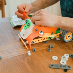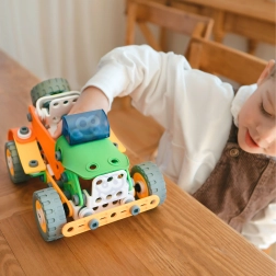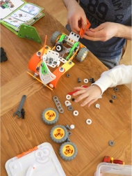 De bouwset stimuleert creativiteit, logisch denken, fijne motoriek en ruimtelijk inzicht – ideaal voor de eerste stappen in de wereld van techniek.