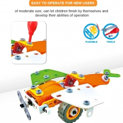 De Woopie STEM 5-in-1 bouwset biedt alles wat kinderen leuk vinden: kleurrijke onderdelen, schroeven, wielen en gereedschap waarmee ze eenvoudig kunnen bouwen, uit elkaar halen en opnieuw opbouwen. Dankzij de flexibele elementen ontstaan originele combinaties en modellen met realistisch bewegende delen.