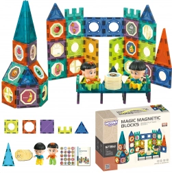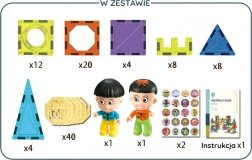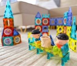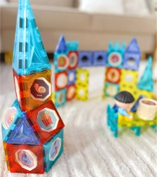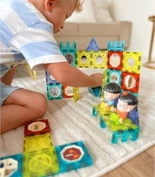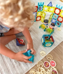 Sterke magneten laten kinderen snel bouwen en verbouwen. Constructies behouden hun vorm en moedigen verder experimenteren met vormen en kleuren aan.