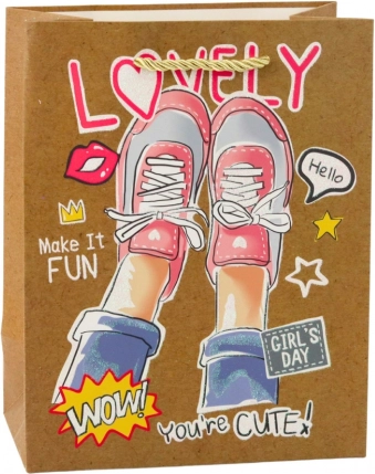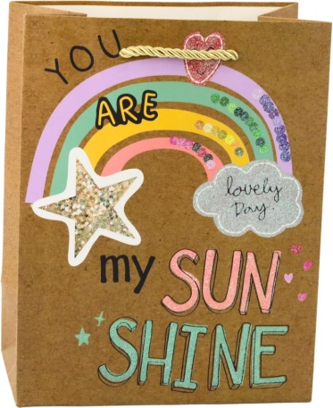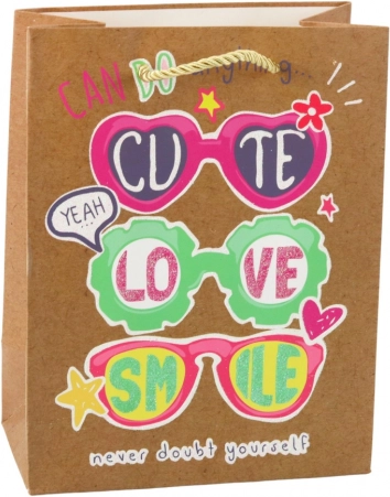 De tas kenmerkt zich door vier verschillende motieven, elk betoverend met levendige kleuren en positieve slogans die het jeugdige en optimistische karakter benadrukken. Sterke koordhandvatten zorgen voor comfortabel dragen en zijn kleurmatig afgestemd op het ontwerp. De tas met afmetingen 23 x 18 x 10,5 cm is ideaal voor het verpakken van middelgrote en kleinere cadeaus, zoals cosmetica, accessoires, boeken of snoep.