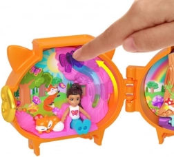Ontdek de wereld van zakformaat plezier met de draagbare set van Polly Pocket! De schattige compacte box in de vorm van een dier opent naar een miniwereld vol fantasie en bevat een pop, 2 dierenfiguren (één met zachte vacht) en een kam verborgen in het bovenste deel. Dankzij de clips voor aan de rugzak en de mogelijkheid tot koppelen en stapelen beleven kinderen creatieve speelpret thuis en onderweg.