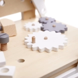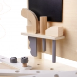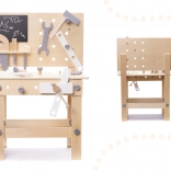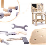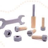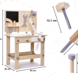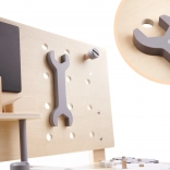 Het speelgoed imiteert echte gereedschappen zoals een schroevendraaier, hamer en Engelse sleutel, ideaal voor de ontwikkeling van de fijne motoriek en de verbeelding van kinderen.