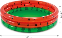Zomers plezier in de tuin voor de allerkleinsten! Rond opblaasbaar zwembad met watermeloenmotief van INTEX biedt ruime speelruimte (168 × 38 cm), duurzame PVC wanden met 3 ringen en een capaciteit van 581 l. Ideaal voor kinderen vanaf 2 jaar, met eenvoudige installatie en een aantrekkelijk design voor eindeloos waterpret.