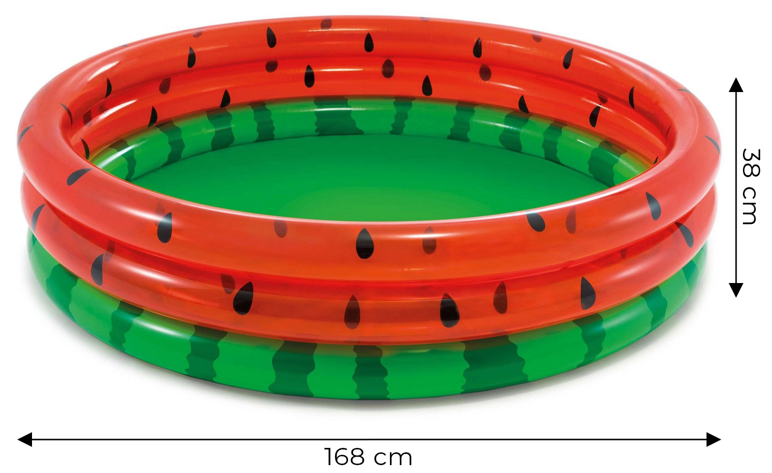 Het stijlvolle zwembad in de look van een sappige watermeloen brengt direct een zomerse sfeer in je tuin. Dankzij de drie opblaasbare ringen van hoogwaardig PVC (0,23/0,18 mm) is het stabiel, comfortabel en bestand tegen normaal gebruik. Waterhoogte 18 cm is vriendelijk voor kleinere kinderen en geeft ouders een veiliger gevoel.