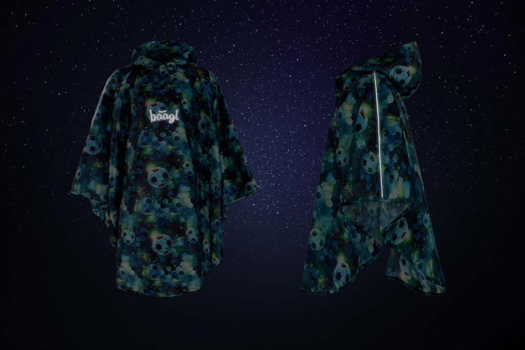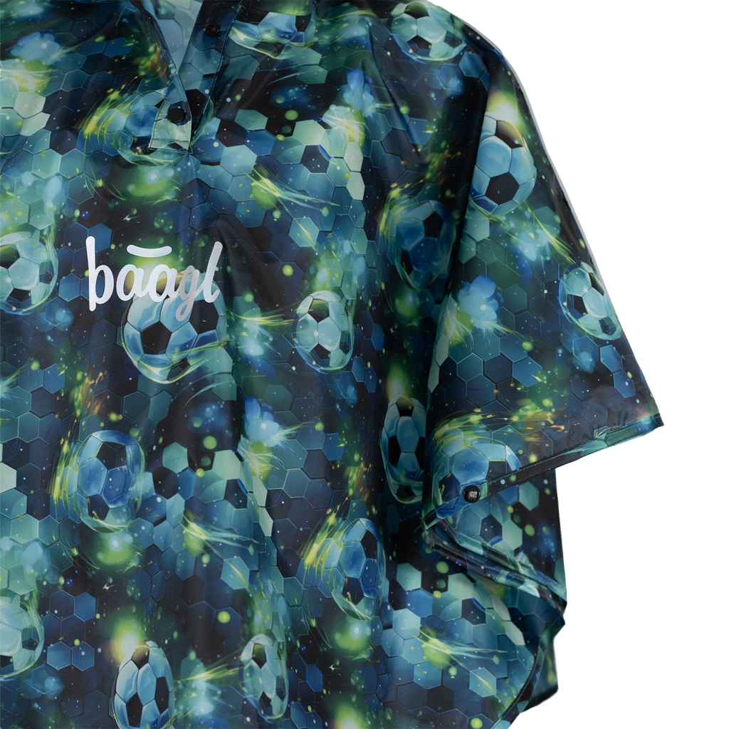 Ontdek betrouwbare bescherming tegen regen in een speels voetbaldesign. De BAAGL kinderponcho is licht, compact en waterdicht, en daardoor ideaal voor school, het speelveld en uitstapjes. De capuchon met klep beschermt het gezicht tegen druppels en het ontwerp met hexagonale patronen en ballen zal kinderen aanspreken.