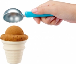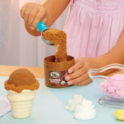 Dankzij het vormzand en de handige schep maken kinderen gemakkelijk realistische bolletjes voor hoorntjes en bakjes – leuk én goed voor de fijne motoriek.