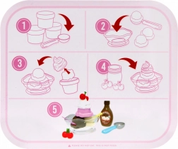 Bij de set hoort speciaal vormzand om makkelijk bolletjes te maken, een receptkaart om stap voor stap te leren, en een uitgebreide selectie accessoires voor realistische ijsbereiding in de kinderkitchen.