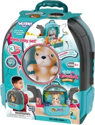 Ontdek de creatieve wereld van dierenverzorging met de draagbare WOOPIE 3-in-1 set. De praktische rugzak verandert na het openen in een volwaardige dierenkliniek met huisje en tuintje, waar kinderen hun hondjes kunnen onderzoeken, behandelen en verwennen. Dankzij de rijke set accessoires is het spel boeiend, realistisch en educatief.