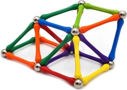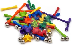 De combinatie van kleurrijke stokjes en metalen ballen maakt deze bouwset zowel visueel aantrekkelijk als interessant om aan te raken, wat interactie en concentratie bevordert.