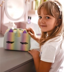 Dit kleurrijke koffertje met ingebouwde spiegel is ideaal voor het veilig bewaren van cosmetica en accessoires. Het beschermt niet alleen hun inhoud, maar voegt ook een vleugje magie en speelsheid toe aan elke meisjeskamer.