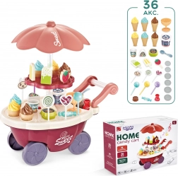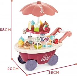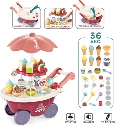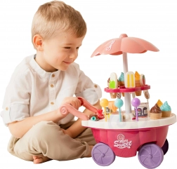 Dit speelgoed simuleert de rol van verkoper en koper, wat helpt bij het ontwikkelen van sociale vaardigheden en bewustzijn. De kar heeft veel hoogwaardige accessoires en stickers voor het spel en de verkoop van ijs en snoep. Het speelgoed biedt mogelijkheid om basis wiskundige en financiële vaardigheden te leren door middel van gesimuleerde aankopen met behulp van meegeleverde munten.