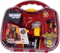 De hoogprofessionele set is een getrouwe weergave van echte brandweergereedschappen. De brandblusser spuit echt water, de zaklamp geeft licht en de megafoon maakt geluid van een brandweersirene. Het kind kan de identificatiekaart aanpassen met zijn of haar naam en zich als een echte brandweerman voelen. De onderdelen zijn ideaal aangepast voor kinderhandjes. Het spelen als brandweerman stimuleert creativiteit en verbeelding en vergroot het bewustzijn van het dagelijks leven.
