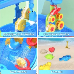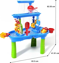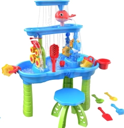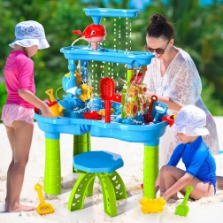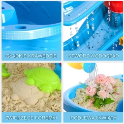 Ontdek een speeltafel die kinderen binnen en buiten bezig houdt. Dankzij de constructie met 3 niveaus kunnen kleine ontdekkers water in het bovenste reservoir gieten, de waterval naar het onderste badje volgen en het waterrad laten draaien. De tafel is ook ideaal voor spel met zand – zowel gewoon als kinetisch.