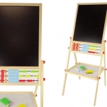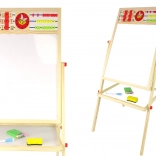 Het houten dubbelzijdige bord is een ideale educatieve speelgoedset voor kinderen vanaf 3 jaar. De stabiele constructie op poten zorgt voor veilig spelen. De combinatie van twee oppervlakken, één krijtbord en één magnetisch bord, biedt veel speelmogelijkheden: Het bord is gemaakt van natuurlijk hout, wat veiligheid voor kinderen garandeert. In de set inbegrepen zijn ook:Dit bord is een uitstekende keuze voor de ontwikkeling van fijne motoriek en ruimtelijk inzicht bij kinderen. Het helpt bij het leren van letters en basisrekenen. Houten speelgoed is populair vanwege de veiligheid, duurzaamheid en milieuvriendelijkheid.