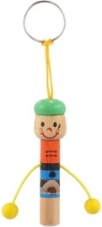 De houten sleutelhanger mannetje met fluitje combineert plezier en functionaliteit in een klein accessoire. Licht in gewicht, prettig in de hand en dankzij het lusje eenvoudig te bevestigen aan sleutels of rugzak. Het speelse uiterlijk met kleurige details maakt het een perfect klein cadeautje of aardige attentie.
