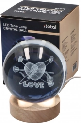 Elegant kristallen lampje in de vorm van een bol met het motief Love, diameter 6 cm, creëert zacht atmosferisch licht met een vermogen van 1,5 W. Ideaal als decoratie voor de slaapkamer, woonkamer of op het bureau. CE-gecertificeerd voor een veilige en betrouwbare werking.