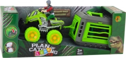 Quad met bestuurder en kooi voor dinosaurus is een spannende speelgoedset die kinderen meeneemt naar een wereld vol uitzonderlijke avonturen – rechtstreeks de wilde jungle in, boordevol gevaarlijke dinosaurussen en fascinerende ontdekkingen. Het kleurrijke terreinvoertuig met grote, opvallende wielen is ontworpen voor dynamisch speelplezier – zowel binnen als buiten. Dankzij de meegeleverde kooi kunnen kinderen in de rol kruipen van een dappere jager op prehistorische reptielen en de gevangen dinosaurus naar een veilige plek vervoeren.