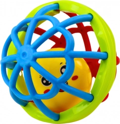 Lichte en veilige sensorische bal voor baby’s van zachte, elastische rubber biedt verschillende texturen, heldere kleuren en een geïntegreerde rammelaar voor de ontwikkeling van zintuigen en fijne motoriek. Gemakkelijk vast te pakken, duurzaam en eenvoudig te reinigen – het ideale speeltje voor de eerste ontdekkingen.