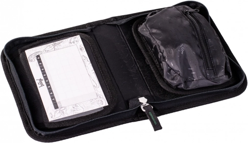 Binnenin vind je een vakje voor kleine spullen en een venstertje voor het lesrooster. Na openen kan het hele etui worden opengevouwen, wat het overzicht vergemakkelijkt.